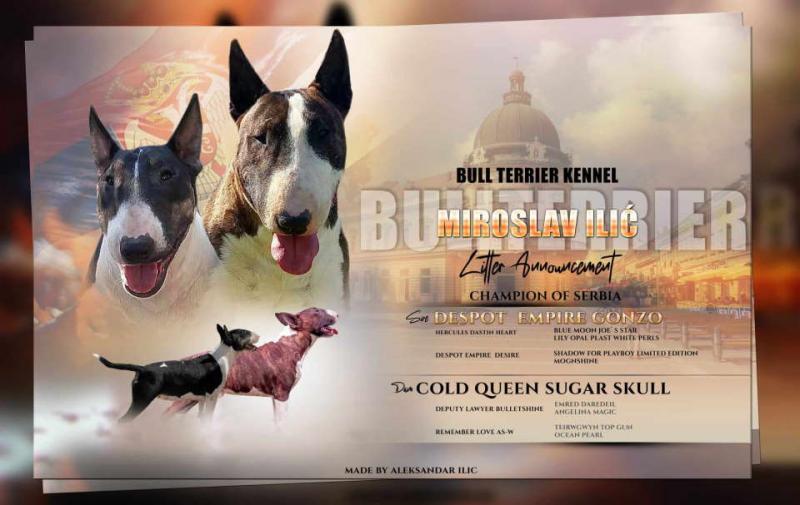 Standard Bull Terrier stenci na prodaju, ostenjeni 18.12.2023. Vrhunskog porekla, roditelji iz registrovanih odgajivačnica (Despot Empire i Sugar Skull). Prodaju se sa rodovnicima, sa svim primljenim vakcinama.