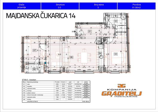 Novogradnja, trosoban, 61,90 m2, Banovo brdo, Majdanska Čukarica 14